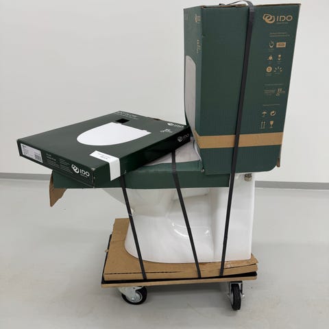 Geberit Ido Smart wc-istuin ja asennusteline. Pakettiin kuuluvat seinä-wc-istuin, kansi, Geberit-asennusteline sekä Geberit-huuhtelupainikelevy. Osat on tarkoitettu seinään asennettavaan wc-ratkaisuun, jossa säiliö jää piiloon rakenteen sisään. Tuotteet ovat CE-merkittyjä ja yhteensopivia keskenään saman valmistajaryhmän järjestelmässä.