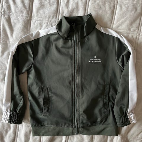 Hupullinen verkkaritakki jossa on hihoissa peukaloaukot.