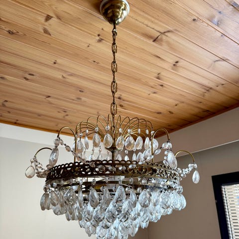 Upea vanha vintage kattokruunu. Myyn myös toista suhteellisen samannäköistä. On nykyaikaiseen kattopistorasiaan sopiva. Nouto tai kuljetus.