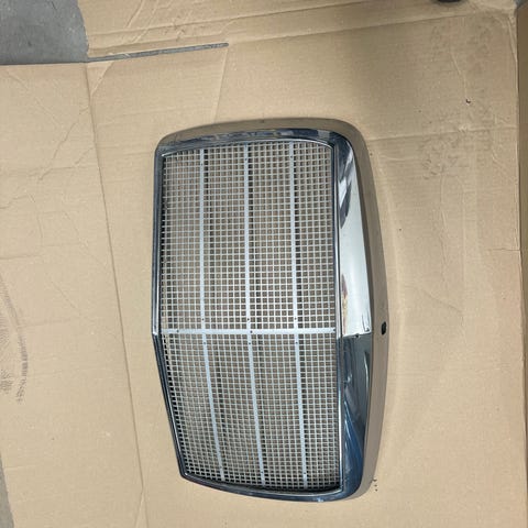 Mercedes-Benz keulaembleemi. vm. 1970 w115/114 autosta. Kromatuu tähti, joka on tarkoitettu asennettavaksi auton maskin yläosaan. Sopii korvaavaksi osaksi tai varaosaksi ajoneuvoon, jossa käytetään vastaavaa.