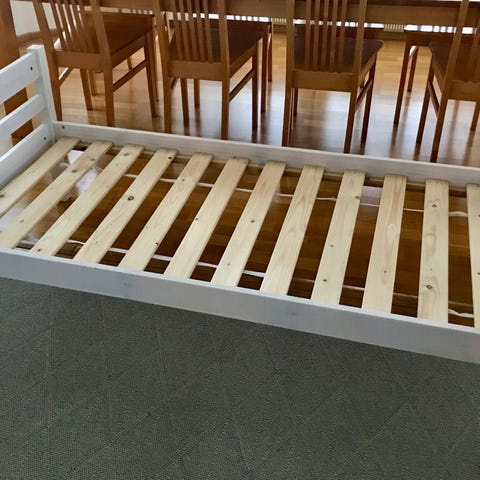 Tästä vauhtilapselle todella hyväkuntoinen autosänky. Patjan mitat 160x80 patjan saa halutessaan mukaan. Pieni haalea tahra toisessa päässä patjaa. Todennäköisesti lähtee helposti pesussa. Ei ole hinnalla ainakaan pilattu.