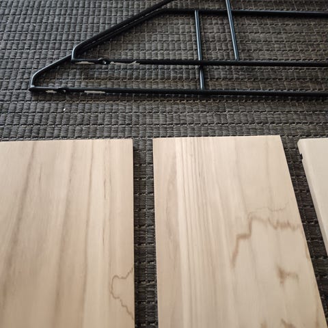 Hyllylevy. Jotain hyvin pientä käytönjälkeä.