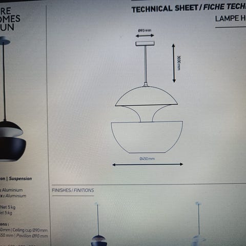 Riippuvalaisimessa on kartiomainen lampunvarjostin, jonka halkaisija on 26 cm.