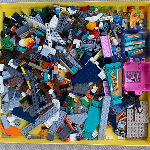Tästä noin 40-50 lego figuuria ja figuureihin liittyviä osia. Halvalla vaikka leikkeihin.