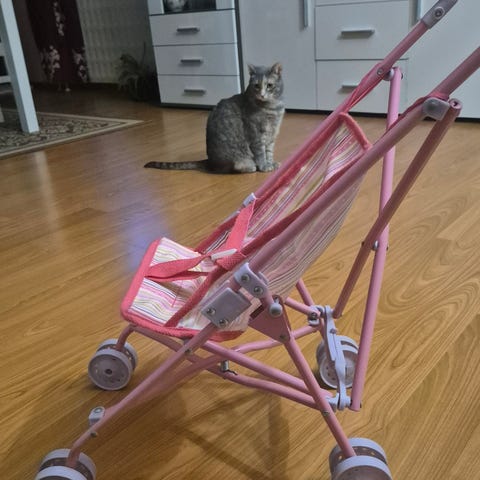Baby Born potkupyörä nukelle. Muovinen vaaleanpunainen runko, violetti istuin ja etukori. Kolmipyöräinen malli, jossa työntöaisa lapsen ohjausta varten. Soveltuu Baby Born -nukelle ja vastaavan kokoisille nukeille leikkipyöräksi sisä- tai ulkoleikkeihin kuivalla alustalla. Tuotteessa on musiikki ääni joka toimii. Pystyy ottamaan pois päältä ja pistämään päälle. Mikäli ei jaksa kuunnella musiikkia pystyy patterit ottamaan pois☺️