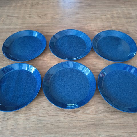 Hyväkuntoiset Teeman lautaset Duo-sarjaa, yhteensä 6 kpl, leveys 21,5 cm, väri tummansininen, vain nouto, maksu Mobile pay.