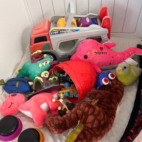 Setti sekalaisia leluja. Meille tarpeettomaksi jääneet.
