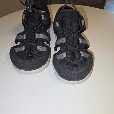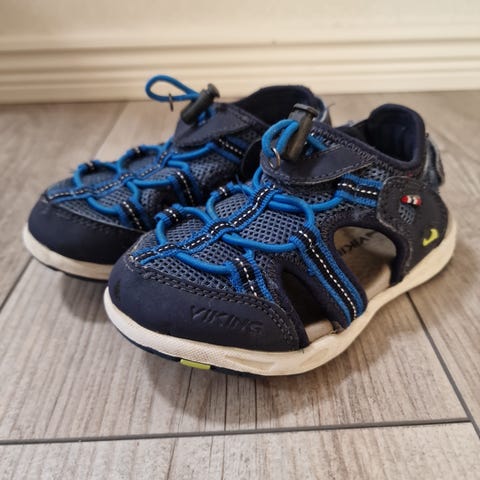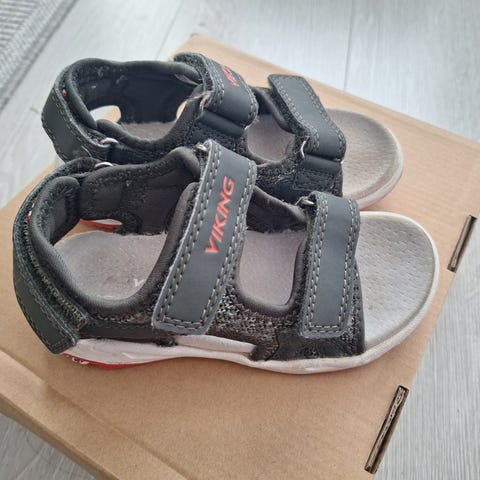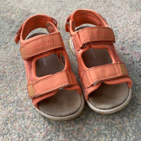 Viking sandaalit 27. Ihan ok siisti käytetyn kengän kunto. Kengän kärjessä vähän kulumaa. Pohjissa vähän tummentumaa, mutta ei toki näy käytössä. Pohjan mitta sisäpuolelta mitattuna noin 17,7 cm.