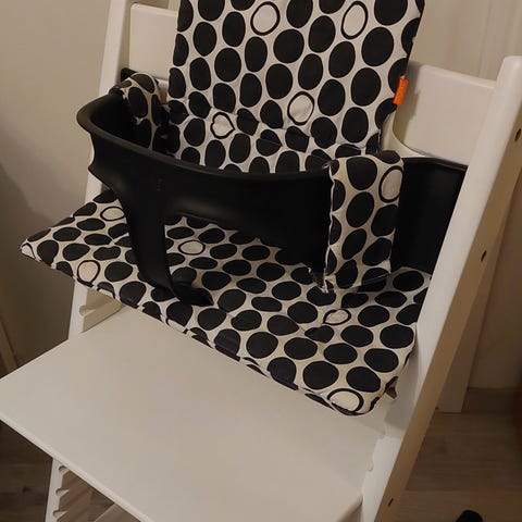 Stokke Tripp Trapp syöttötuoli. Tuoliin saa yhdistettyä muovisen baby setin (ei kuulu kauppaan).