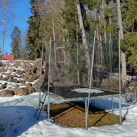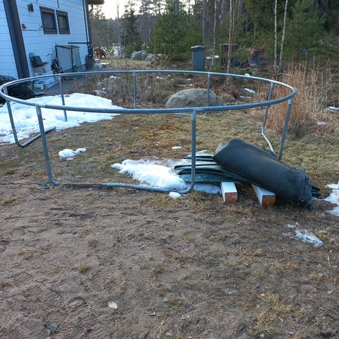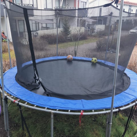 Olleet ulkovarastossa ja käytetty ulkona. Tunneli ja limbo soveltuvat myös koiran agilityharrastukseen - miksei vannekin. Vannetta vahvistettu teipillä (näkyy kuvassa). Vain nouto.