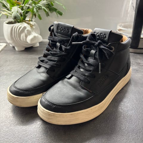 Myydään erittäin siistikuntoiset ja tyylikkäät mustat Björn Borg -merkkiset korkeavartiset tennarit. Nämä kengät sopivat täydellisesti syksyyn ja talveen, sillä niissä on lämmin ja pehmeä karvavuori.