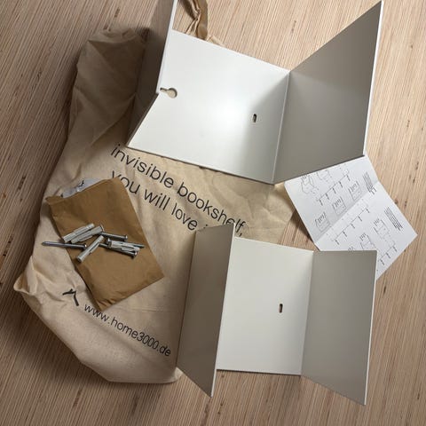 Valkoinen hyllykkö lehdille tai kirjoille.