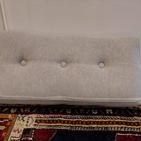 Kaksi nahkaista (en tiedä ovatko oikeaa nahkaa) sängyn päätyyn tulevaa tyynyä. Paino toisessa päässä niin asettuu. Tosi kivasti sängyn päädyn yli ja toimii niskatukena esim tv katselussa tai kirjan lukemisessa, pystyy säätämään korkeuttta.