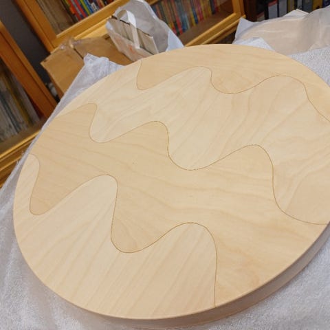 Uusi Artek x Marimekko jakkara "Seireeni". Ei merkkiä että jalkoja olisi koskaan kiinnitetty. Ei laatikkoa, mutta kyseessä uusi jakkara.