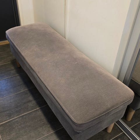 Ikean monikäyttöinen penkki. Sopii eteiseen, sängyn jalkapäätyyn ja olohuoneeseenkin. Kolmen istuttava. Istuinosan alla on suuri säilytystila.