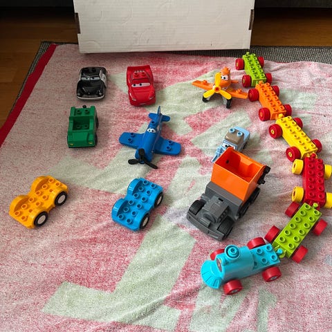 Duplo ajoneuvoja joista voi rakentaa ohjeiden mukaan 8 erilaista ajoneuvoa + ekstrana paloauto. Oikein hyvä kunto. Netistä löytyy ohjeet kaikkiin, yksi kuva kadonnut.