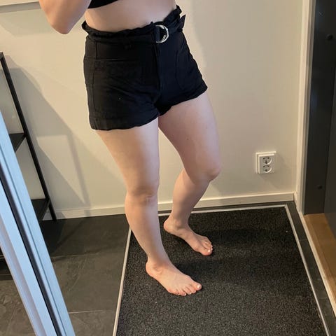 Mustavalkoiset pystyraidoitetut shortsit varustettuna vyöllä. Koko 38. Merkki Amisu. Ostettu new yorkerista. Löytyy taskut edestä. ☀️