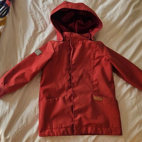 Siistikuntoinen vk-takki koossa 98, ei toki enää täysin uutta vastaa, mutta siisti ja tahraton. Ainoa miinus, että kangas taskun nepparin päältä kulunut. Näkyy kuvassa.