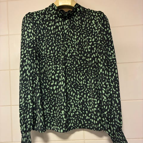 H&M naisten pusero, koko XL. Puserossa on mustavalkoinen kirjava kuosi ja pitkät hihat, hyvin laskeutuva malli. Materiaali on 100 % polyesteriä. Kaulus korkeampi, jossa takana päällystetyt napit. Nouto tai postitus