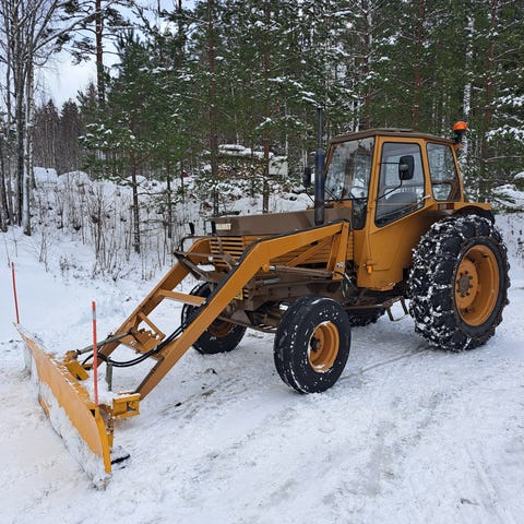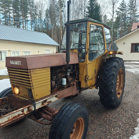 Valmet 702S, elikkä turbo malli. Vuosimalli 1973. Rekisterissä. Kauppaan kuuluu perälevy sekä ketjut. Lämmin hyttii. Kippi hydrauliikka. Löytyy lohkolämmitin ja webasto. Työkuntoinen, mutta laittoakin löytyy, esim sähköt olis hyvä rakentaa uusiksi. Tästä oiva kohde entisöintiin tai sitten lykkii lumia tollasenaan. Myydään vähäisen käytön vuoksi.