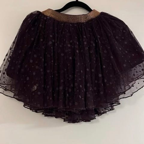 Hyväkuntoinen vaaleanpunainen, kimaltava hame. Koko 128. Vyötäröllä kiristysnauha.mateaali: polyesteri (päällykangas) ja Puuvilla (alushame).