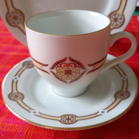 Myydään 4 kpl:tta kahvikuppi+asetti. Käyttämättömät ja virheettömät. Suunnittelija Tony Granholm.