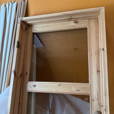 Ovi uutena elämään, lasinen saunan ovi.(89×190) Ollut käytössä muutaman vuoden, nyt joutilaana seuraavaan reikän täytteeksi.