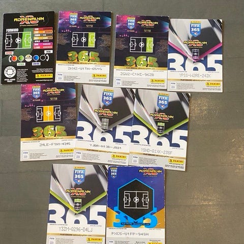 Panini FIFA 365 Limited Edition jalkapallokeräilykortit. Pakettiin kuuluu useita rajoitetun erän kortteja, joissa on jalkapalloilijoiden kuvat ja pelaajatiedot. Korttien taustapuolella on koodit ja kenttäkuviot, jotka liittyvät kokoelmaan ja mahdollisiin lisäominaisuuksiin. Sopii keräilyyn ja kokoelman täydentämiseen.