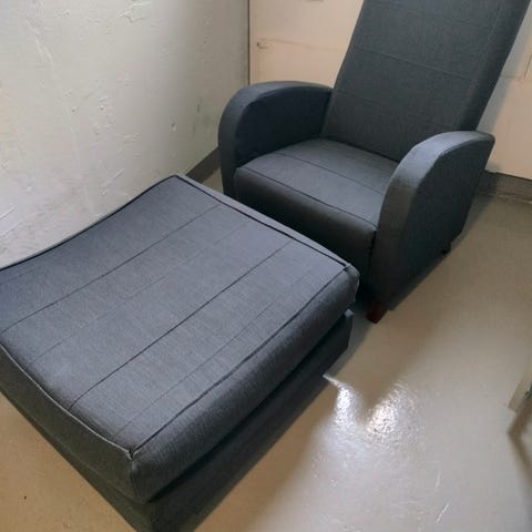 Varattu. Nojatuoli ja rahi