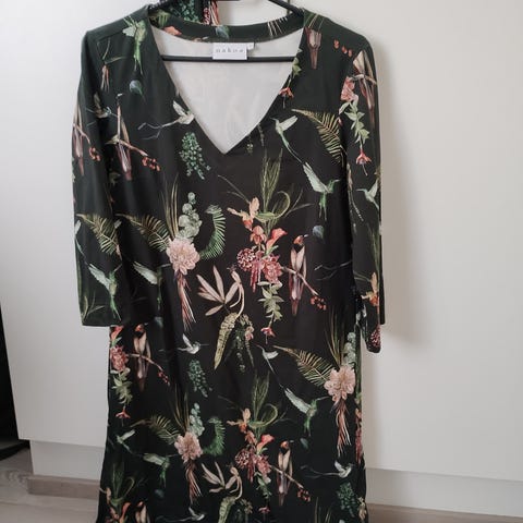 Upea Nakoa Annika mekko, koko M. Väri Lush. Mekko on uusi ja käyttämätön, laput vielä kiinni. Mekko on valekietaisumalli ja siinä on samaa kuosia oleva irrotettava vyö, jonka voi solmia monin tavoin. Takana vetoketju. Helmassa ja hihoissa kauniit aaltoilevat muotolaskokset.