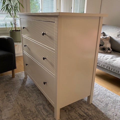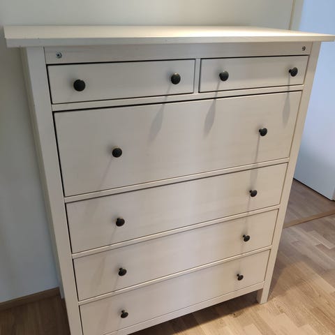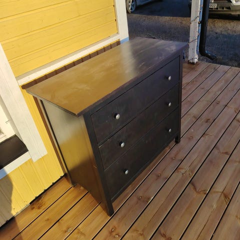 Kaksi Ikean ihanaa puista HEMNES lipastoa. Mustanruskealla petsauksella. Laatikot toimivat moitteettomasti. Yleisilme siisti.