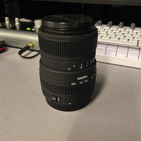 Myydään hyväkuntoinen käytetty Sigma 55–200mm zoom-teleobjektiivi.