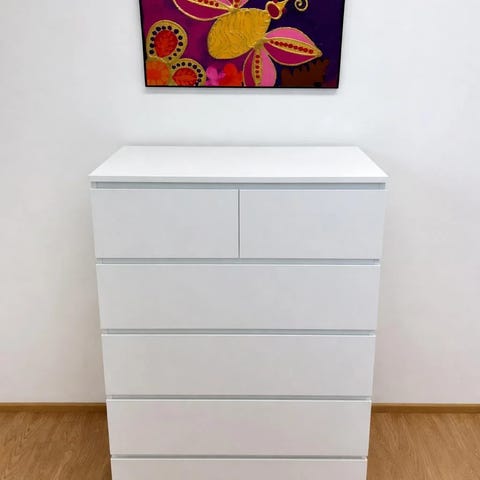 🗄️ Hyväkuntoinen IKEA MALM Lipasto, 6 laatikkoa, valkoinen on myytävänä.