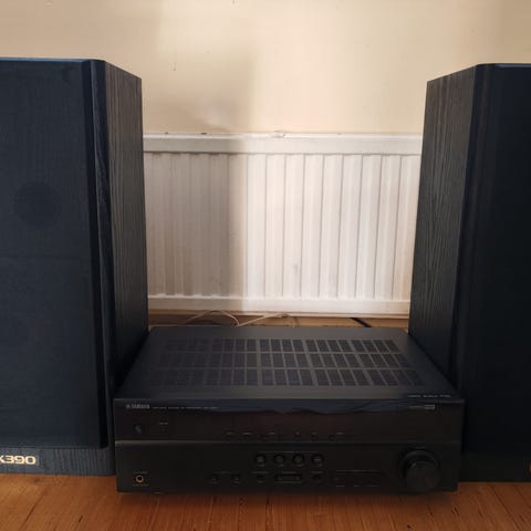 Yamaha, RX-V392, vahvistin, AV-vahvistin, stereovahvistin, viritinvahvistin, receiver, kotiteatterivahvistin, hifi, audio, phono, vanha Yamaha, musta vahvistin, 90-luku, stereo, kaiuttimet