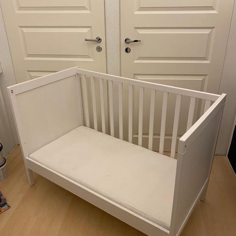 Ikean pieni vauvan kehto/pinnasänky keinumis ominaisuudella, mutta jalat saa myös lukittua niin että ei keinuta. Pituus 84cm, leveys 53cm, korkeus 53cm. Yhdessä laidassa enemmän naarmuja, niistä kuva. Muuten tosi siistikuntoinen. Mukaan saa etolasta joulukuussa ostetun vaahtomuovipatjan sekä pinnasängyn petauspatjasta itse pienennetyn, patjaan sopivan ohuen petauspatjan. Patjan päällä pidetty aina petauspatjaa sekä lakanaa, joten on puhdas ja tahraton. Meidän vauva ei tosin tässä ole montaa kertaa makoillut, kun on ollut vain päiväkäytössä olohuoneessa tämä sänky. Koiratalous :)