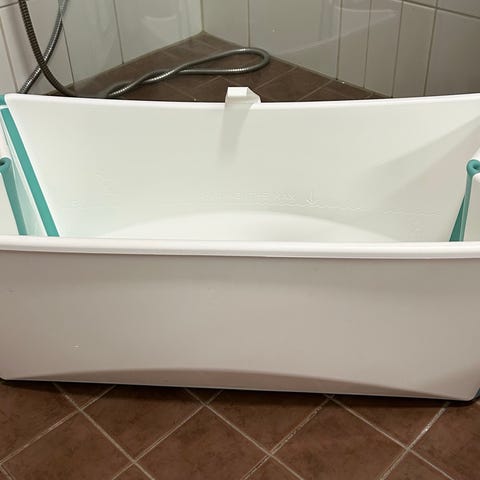 Stokke Flexi Bath -kylpyamme vauvalle. Taittuva muovinen vauvan kylpyamme, väri valkoinen harmailla tukiosilla. Mukana erillinen vauvatuki, joka helpottaa pienemmän lapsen kylvettämistä. Ammeen pohjassa on tyhjennystulppa veden laskemista varten. Soveltuu vauvan ja pienen lapsen kylvettämiseen kotona tai matkalla, ja sen saa taitettua kasaan säilytystä varten.