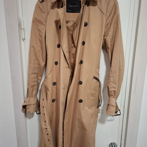 S koon puolipitkä trenssitakki. Tukevaa puuvillakangasta. Kunto hyvä.