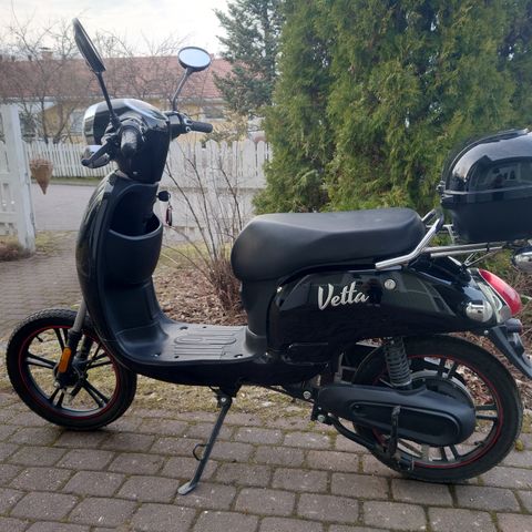 Kontio Motor sähköskootteri. Väriltään musta malli, jossa on leveät renkaat, istuin takajousituksella sekä digitaalinen mittaristo nopeuden ja ajomatkan seurantaan. Sähköskootteri soveltuu yhdelle kuljettajalle kaupunki- ja lähialueajoon. CE-merkitty ajoneuvo, jossa valmistajan tyyppikilpi rungossa.