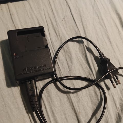 Nikon MH-24 laturi. Aikanaan kaappiin jäänyt ehjänä mutta nyt ei ole akkua millä laturia voisi testata. Ainakin sähkömittari antoi jotain elon merkkejä. Jos haluaa postin kautta niin kulut on 8.90e.