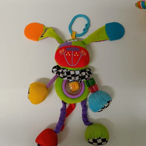 Liikkuu sivusuunnassa ja vaihtaa suuntaa lähestyessään esteitä. Toimii musiikilla tai ilman. Hauska lelu liikkumaan opettelevalle seurattavaksi tai pienemmällekin ihmeteltäväksi.