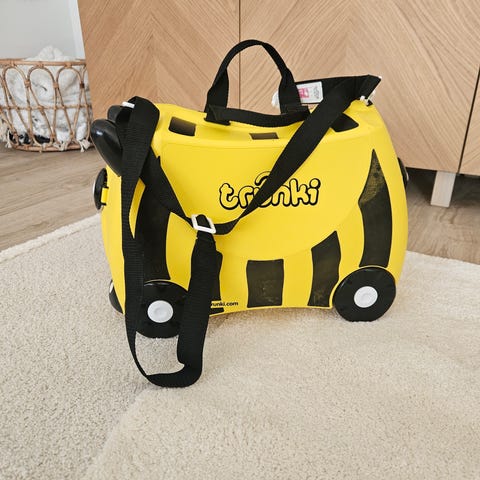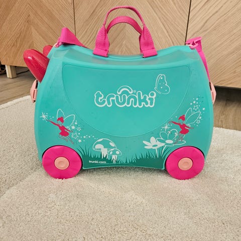 Lasten Trunki -matkalaukkuun tarroilla kiinnitettävä satulan-mallinen pehmuste.