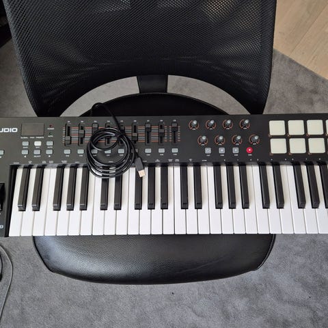 Toimiva M-Audio Oxygen 49 kiippari. Loistava työkalu kotistudiolle käytettäväksi esim. Logic Pro:n tai FL-studion kanssa.
