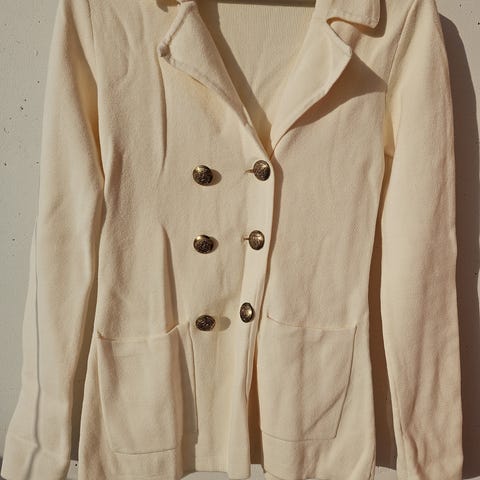 Vila uusi ja käyttämätön jakku kokoa xs. Laput vielä kiinni. Vuorellinen. Pinnassa pitsikuviointi. Rinnassa tasku. Lyhyttä mallia. Nouto Vihdistä tai Espoosta. Kulkeutuu Helsingin keskustaan.