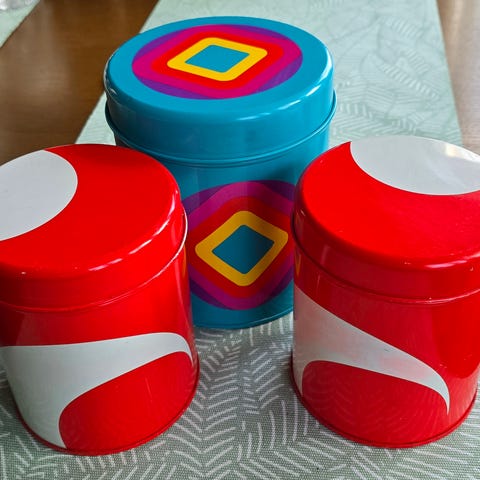Lähes käyttämätön puolitusinainen Kaija Aarikan v. 1968 suunnittelemia oranssi-musta "tuliainen" matalia peltilautasia. Halkaisija n. 16cm. Lahjaksi saadut, käyttämättä jääneet. Myyn kaikki yhteishintaan 38 euroa. Haku Kotkan Karhulasta tai pakkaan postin kuljettavaksi.