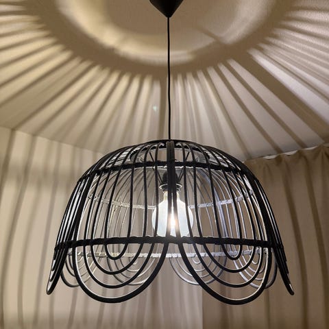 Myydään erittäin kaunis, puinen kattovalaisin kuvien mukaisena. Valaisin on uutta vastaavassa kunnossa.