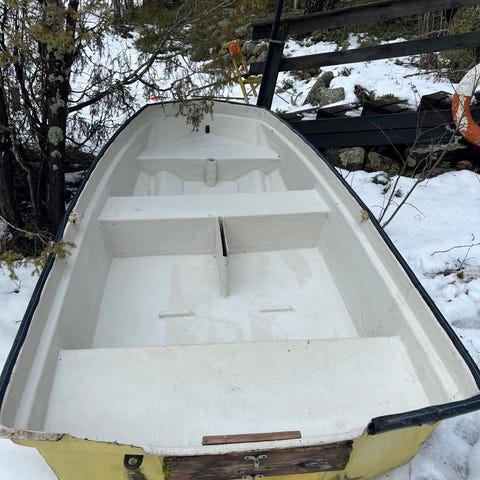 Purjejolla, vanha ja vaatii kunnostusta. Veneeseen löytyy masto, purjeet, köli ja peräsin. Vene on käännettynä maassa ja kuvissa näkyy myös joitain tarvikkeita. Pituus 430 ja leveys 130 cm. Noutomyynti. Käteinen tai Mobilepay.
