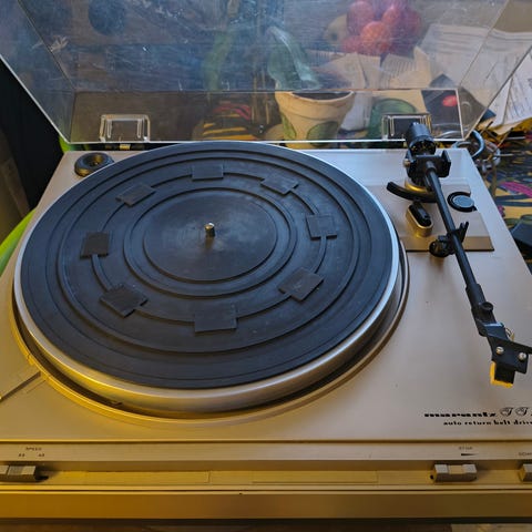 Myydään kuvassa oleva otsikon äänirasia ja neula levysoittimeen.