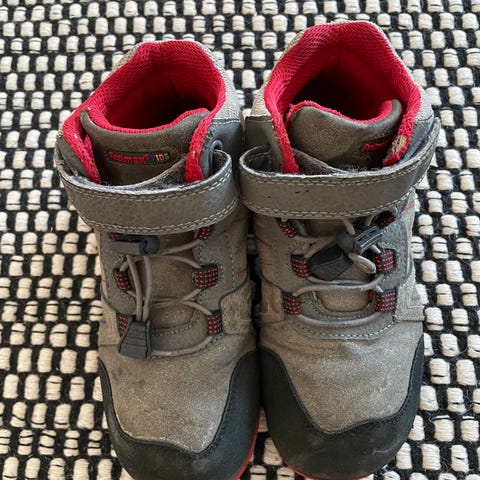 Harmaat Feelmax paljasjalkakengät. Koko 34. Sisämitta n. 21 cm. Vaihdettu pinkit magneettilukkonauhat, mutta alkuperäiset nauhat saa mukaan. Kankaassa tahroja ja toisen kengän kärjestä liimaus irronnut.