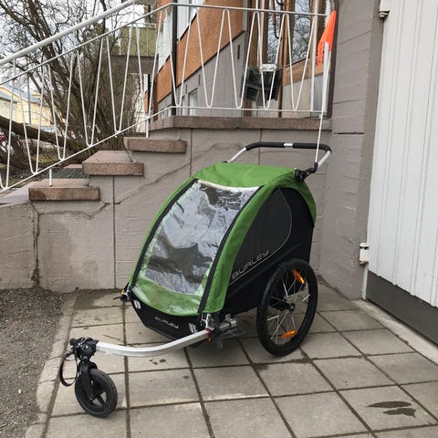 Käytetty pyöräkärry seuraavalle, tilaa kahdelle lapselle, takana myös tavaratila. Paljon käytetty ja käytönjälkiä, edelleen kuitenkin täysin toimiva. Kuvat viime kesältä.