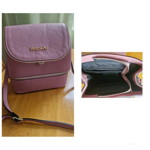 Hyvin tehty laatulaukku, joka toimii myös olkalaukkuna.